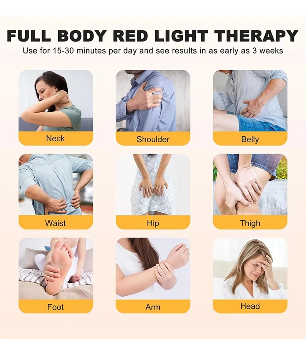 Red light therapy and far infrared heat are widely used in wellness routines to help support circulation, muscle relaxation, and overall body comfort. The combination of gentle heat and therapeutic light allows the body to relax while supporting recovery and everyday wellness.