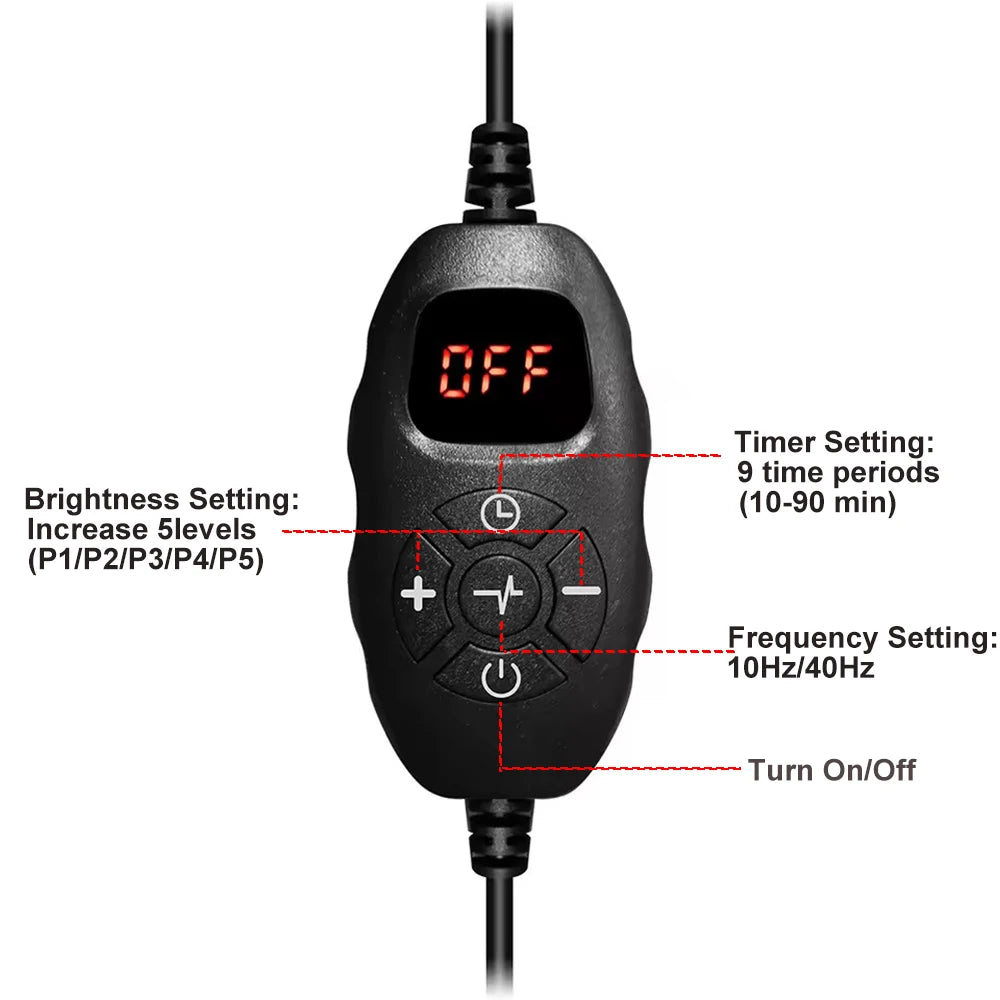 √ Customizable Sessions – 9 timer settings (10-90 mins) + 5 brightness levels