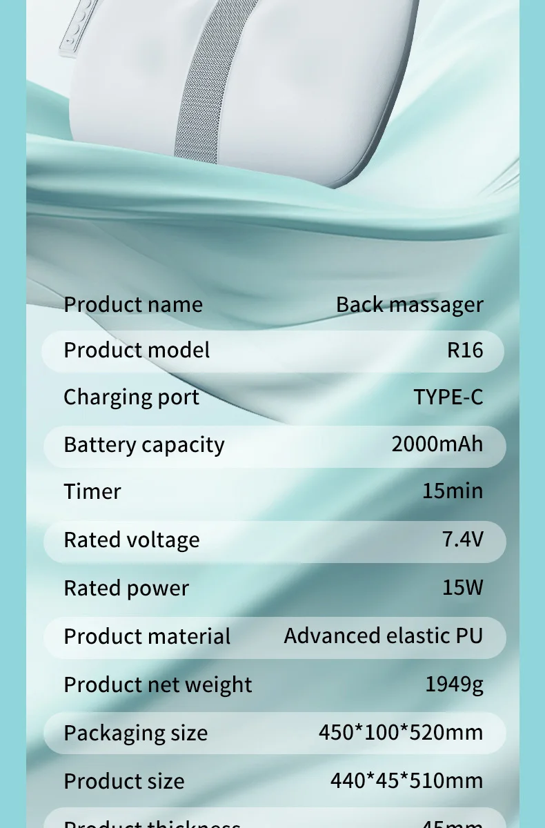 Low-Noise Motor: Equipped with a powerful yet quiet motor, it provides a peaceful massage experience without disturbing your environment.