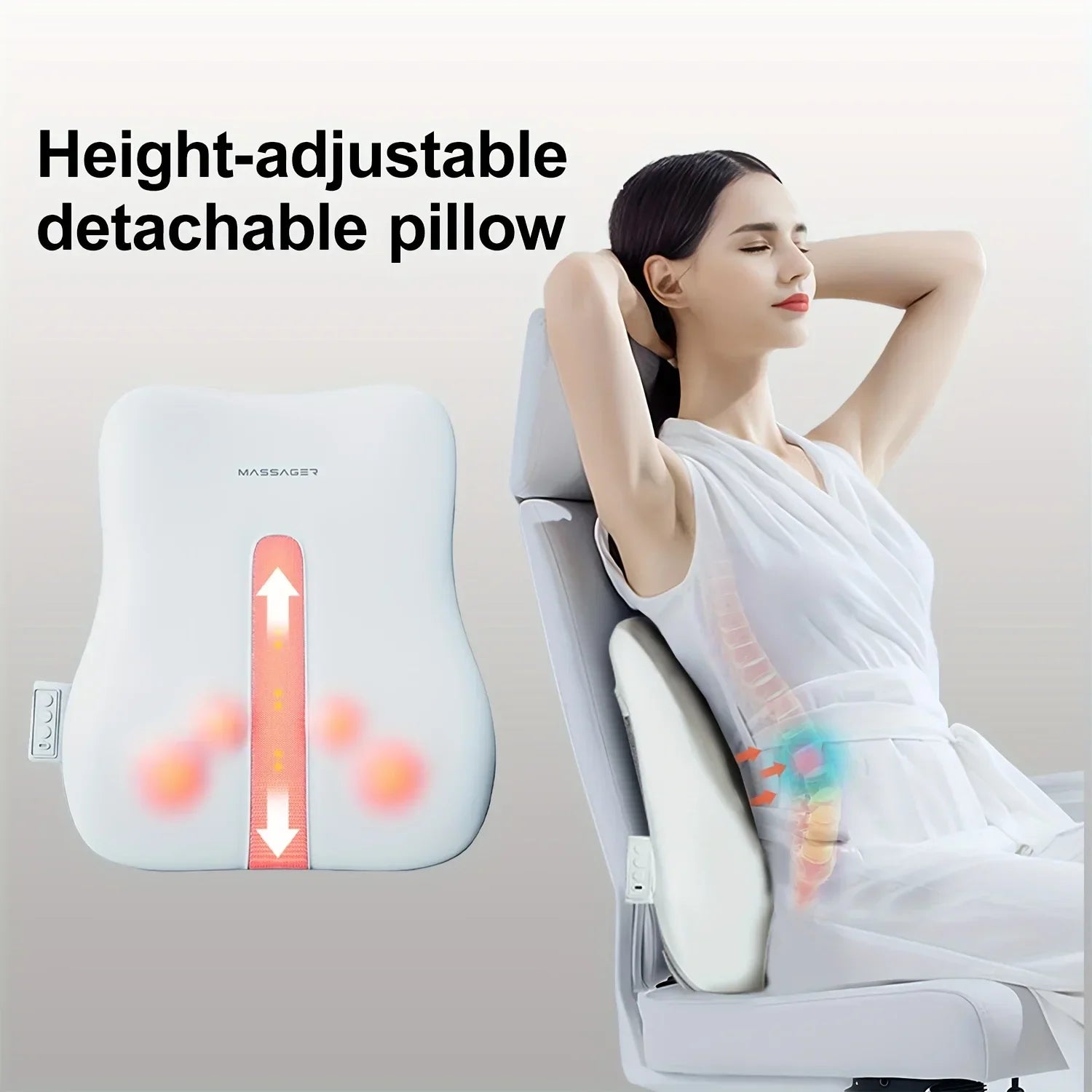 Electric Back Massager with Heat Portable Massage Cushion Cervical Waist Support Deep Tissue Kneading Shiatsu Rechargeable Use