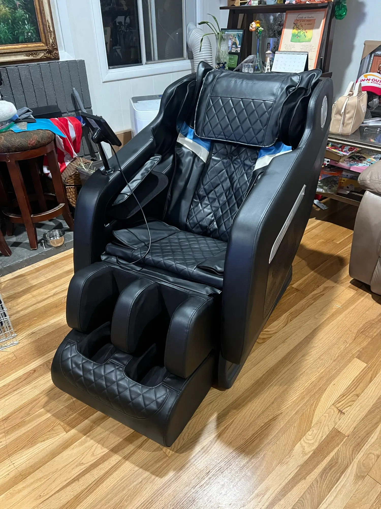 【Easy Controls with Large screen】When you unpack the massage chair, you will get an installed electric massage chair. There are 2 wheels at the bottom of it. You can push it into the house by yourself, then rotate it to install the LCD screen (no tools are needed) and connect it to the power supply and you can use the massage chair