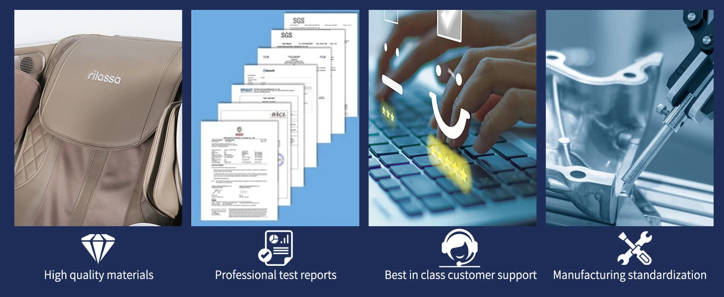 【Warranty Service】Each rilassa massage chair has passed strict quality inspection before leaving the factory, and we provide 3 years after-sales service for our products. Please feel free to contact us with any questions, we will reply within 12 hours.