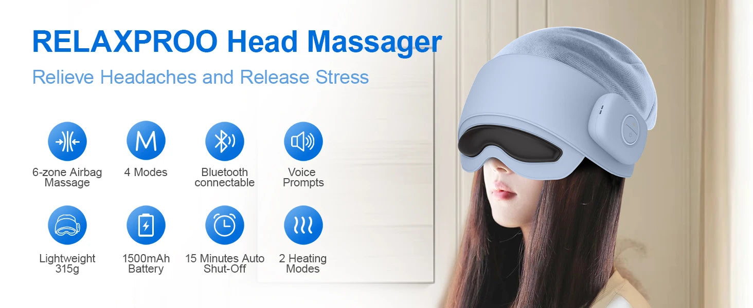 Head Massager for Fatigue Relief, Eye Massager with Heat, Head and Eye Massage for Stress Relief, Bluetooth-Capable, Ideal gifts