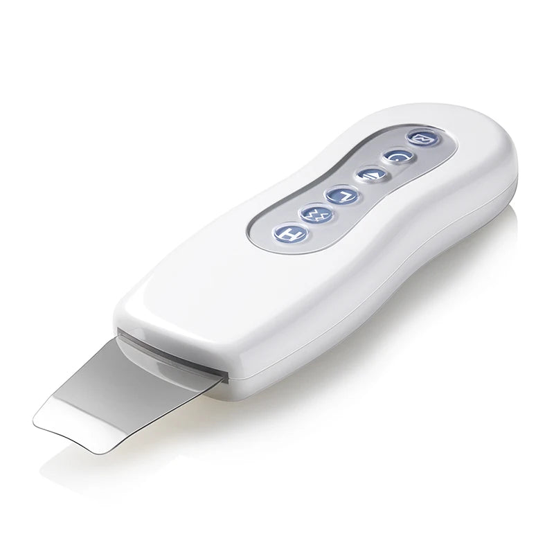 Facial skin ultrasonic scrubber works for gently peel horniness and skin rejuvenation.